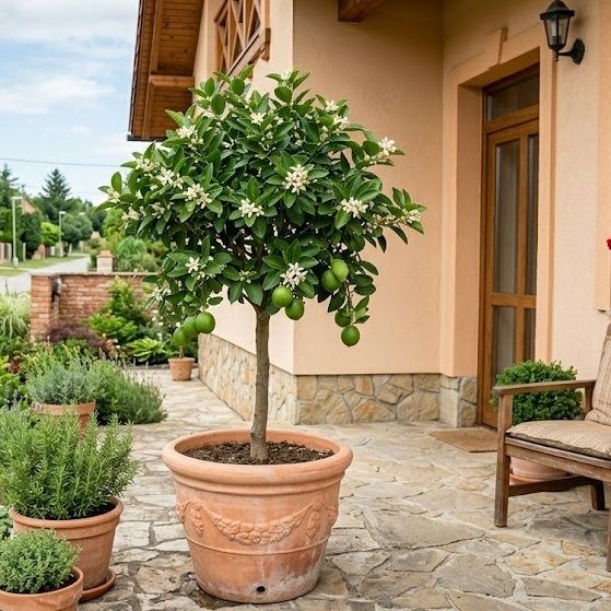 Citrus aurantifolia Lime - Citrónovník Limetový alebo Mexická limetka je vždyzelený, relatívne malý, husto rozkonárený ker alebo malý strom. Rastie skôr do šírky ako do výšky, s mierne nepravidelnou korunou. V dospelosti dosahuje zvyčajne 2 až 4 metre. Je to jeden z menších druhov citrusov. Mladé výhonky sú zelené a často nesú malé, ostré ostne (tŕne) v pazuchách listov. Ostne sú početnejšie pri mladých rastlinách alebo pri silnom raste. Listy sú elipsovité alebo oválne, s mierne zubatým okrajom. Sú menšie a tenšie ako listy citrónovníka. Sú svetlo až stredne zelené, lesklé na lícnej strane. Pri rozmliaždení vydávajú intenzívnu, sviežu citrusovú vôňu. Listy sú dlhé približne 5 až 8 cm. Kvety sú malé, hviezdicovité, s 4 alebo 5 bielymi okvetnými lístkami. Sú usporiadané jednotlivo alebo v malých zhlukoch. Púčiky sú biele alebo mierne fialovo zafarbené na špičke. Po rozkvitnutí sú čisto biele. Sú silne voňavé, s jemnou, sladkou vôňou, typickou pre citrusy. Kvitnú hlavne na jar, ale pri dobrých podmienkach sa kvety môžu objavovať po celý rok (stáleplodiaci druh). Je to samoopelivý druh.