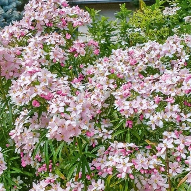 Choisya ternata ´Apple Blossom´® - Choisya ´Apple Blossom´® nazýva sa aj mexický pomarančovník. Táto stálezelená drevina je obľúbená pre svoje atraktívne, aromatické listy a bohaté kvitnutie, ktoré pripomína kvety jabloní. Je to pomerne nenáročný ker, ktorý dodá záhrade eleganciu a príjemnú vôňu. Jemne ružové puky, ktoré sa otvárajú do bielych až bledoružových kvetov, často s ružovým nádychom na vonkajšej strane okvetných lístkov. Sú voňavé, s výraznou citrusovou arómou, podobnou kvetom pomarančovníka. Majú päť lístkov a objavujú sa v hroznovitých súkvetiach. Hlavná vlna kvitnutia prebieha na jar (apríl-máj), často nasleduje druhá, miernejšia vlna na konci leta až na jeseň. Obvykle dorastá do výšky a šírky približne 1 - 1,5 m, čo z nej robí ideálnu rastlinu do menších záhrad, nádob alebo predných častí záhonov. Stálezelené, trojpočetné (listy sa skladajú z troch lístkov), lesklé, tmavozelené. Pri prešúchaní vydávajú silnú, príjemnú citrusovú vôňu. Preferuje plné slnko až polotieň (v príliš ostrom poludňajšom slnku môže trpieť). Potrebuje dobre priepustnú, stredne úrodnú pôdu. Neznáša premočenie. V prípade potreby sa orezáva po odkvitnutí, aby sa udržal kompaktný tvar a podporilo ďalšie kvitnutie. Znesie aj hlbší rez. Je mrazuvzdorný do -18°C.