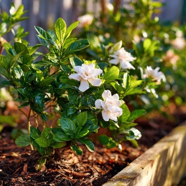 Gardenia jasminoides - Gardénia jazmínovitá je elegantný, stálezelený ker pôvodom z Ázie (Čína, Japonsko). Je celosvetovo obľúbená pre svoje krémovo biele, voskové kvety, ktoré vydávajú jednu z najkrajších a najintenzívnejších vôní v rastlinnej ríši. Hoci je náročnejšia na pestovanie, jej krása a aróma stoja za vynaložené úsilie. Nádherné, voskové, krémovo biele kvety vydávajú mimoriadne silnú, sladkú, omamnú vôňu, ktorá je často prirovnávaná k jazmínu a citrónu. Hlavná vlna kvitnutia prebieha od konca jari do leta (máj - august), pričom môže kvitnúť aj opakovane. Vzrastom ide o kompaktný až stredne veľký ker, ktorý má tendenciu k zaoblenému, hustému tvaru. V našich podmienkach (ako prenosná rastlina) dosahuje výšku a šírku približne 0,6 - 1,5 metra. V optimálnych podmienkach svojho prirodzeného prostredia môže byť väčšia. Má tmavozelené, lesklé, kožovité a oválne až kopijovité. Sú krásnym pozadím pre žiarivé kvety. Vyžaduje špecifické podmienky a starostlivosť. Potrebuje jasné, nepriame svetlo. Priame poludňajšie slnko môže spáliť listy. Pôda by mala byť kyslá (pH 4,5-5,5), bohatá na organické látky, dobre priepustná. Odporúča sa udržiavať pôdu vlhkú, ale nie premočenú. Používať mäkkú, najlepšie dažďovú vodu alebo odstátu, prevarenú vodu, aby sa predišlo zvyšovaniu pH. Vyžaduje vysokú vzdušnú vlhkosť. Pravidelne rosiť listy (vyhnúť sa však kvetom, aby sa netvorili škvrny). Počas vegetácie hnojiť hnojivom pre kyslomilné rastliny.