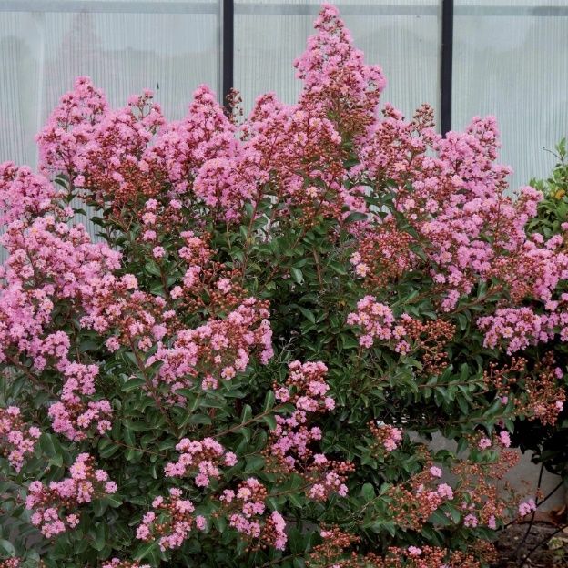 Lagerstroemia indica ´Eveline´ - Myrta krepova ´Eveline´ je moderná a kompaktná odroda myrty krepovej, ktorá prináša do záhrad eleganciu a exotický nádych. Je obľúbená pre svoje dlhotrvajúce letné kvitnutie a premenlivú, dekoratívnu kôru. Vďaka menšiemu vzrastu je ideálna aj na pestovanie v nádobách. rba je jemná pastelovo ružová (až svetloružová), ktorá je veľmi atraktívna. Kvety sa objavujú vo veľkých, koncových súkvetiach (dlhých až 20 cm). Mimoriadne dlhé kvitnutie od júla až do konca septembra/začiatku októbra, z nej robí jednu z hviezd letnej záhrady, kedy už iné dreviny často odkvitli. Kompaktný, vzpriamený a hustý opadavý ker. Je ideálna pre menšie priestory a nádobové pestovanie. V našich podmienkach dorastá do výšky približne 1,5 – 2 metre a podobnej šírky (po 10-20 rokoch). Listy sa na jeseň sfarbujú do zlatých, červených a oranžových odtieňov, čím poskytujú celoročný záujem. Na starších vetvách sa kôra šupinovito odlupuje v odtieňoch hnedej, sivej a béžovej, čím vytvára atraktívnu mozaiku podobnú kôre platanov, čo je dekoratívne najmä v zime. lepšená mrazuvzdornosť (udávaná až do cca -18°C až -21°C pre nadzemné drevo a koreňový systém). Patrí medzi odolnejšie kultivary, čo umožňuje jej pestovanie v chránených polohách južného a stredného Slovenska. V chladnejších oblastiach je nutná dôkladná zimná ochrana a mulčovanie. V nádobách sa odporúča zimovať v miestnosti, kde nemrzne. Vykonáva sa skoro na jar (marec). Toleruje aj hlboký rez, ktorý podporuje tvorbu silných nových výhonkov a bohaté kvitnutie v danom roku.