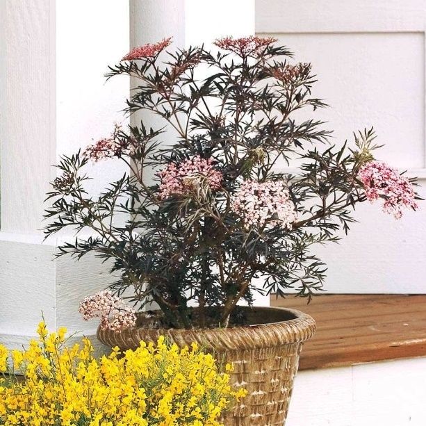 Sambucus nigra ´Black Lace´® - Baza čierna ´Black Lace´ je jedna z najobľúbenejších okrasných drevín práve pre svoj exotický vzhľad a nenáročnosť. Odroda 'Black Lace'® (čierna čipka) je skutočným klenotom v záhradnej architektúre. Tento opadavý ker je cenený predovšetkým pre svoje hlboko vykrajované, tmavofialové až takmer čierne listy, ktoré verne pripomínajú citlivé japonské javory (Acer palmatum), no na rozdiel od nich je baza mimoriadne odolná a nenáročná. Listy sú počas celej sezóny temne purpurové. Sú perfektným kontrastom k zeleným kríkom alebo svetlým fasádam. Na prelome mája a júna sa objavujú veľké, ploché súkvetia drobných ružových kvetov, ktoré neskôr blednú do biela. Vonia po citróne a krásne svietia na tmavom pozadí listov. Na jeseň tvorí jedlé čierne bobule (nutné tepelne spracovať), ktoré sú bohaté na vitamíny a lákajú do záhrady vtáctvo. Z kvetov je možné robiť tradičný sirup (voda bude mať ružovkastý nádych). Je plne mrazuvzdorná a netrpí chorobami, ktoré bežne postihujú exotickejšie rastliny s podobným vzhľadom. Pre najsýtejšie vyfarbenie listov potrebuje plné slnko. V tieni budú listy skôr zeleno-bronzové. Nie je náročná na typ pôdy. Porastie v bežnej záhradnej zemi, ale najlepšie sa jej darí vo vlhkej, humóznej pôde s vápnitým podkladom. Pre udržanie kompaktnejšieho tvaru (1,0-1,5m) a hustejšieho olistenia ju môžete skoro na jar (pred rašením) hlboko zrezať. Bez rezu dorastá do väčších rozmerov a pôsobí viac "divoko" a vzdušne (2,0-3,0m). Je plne mrazuvzdorný.