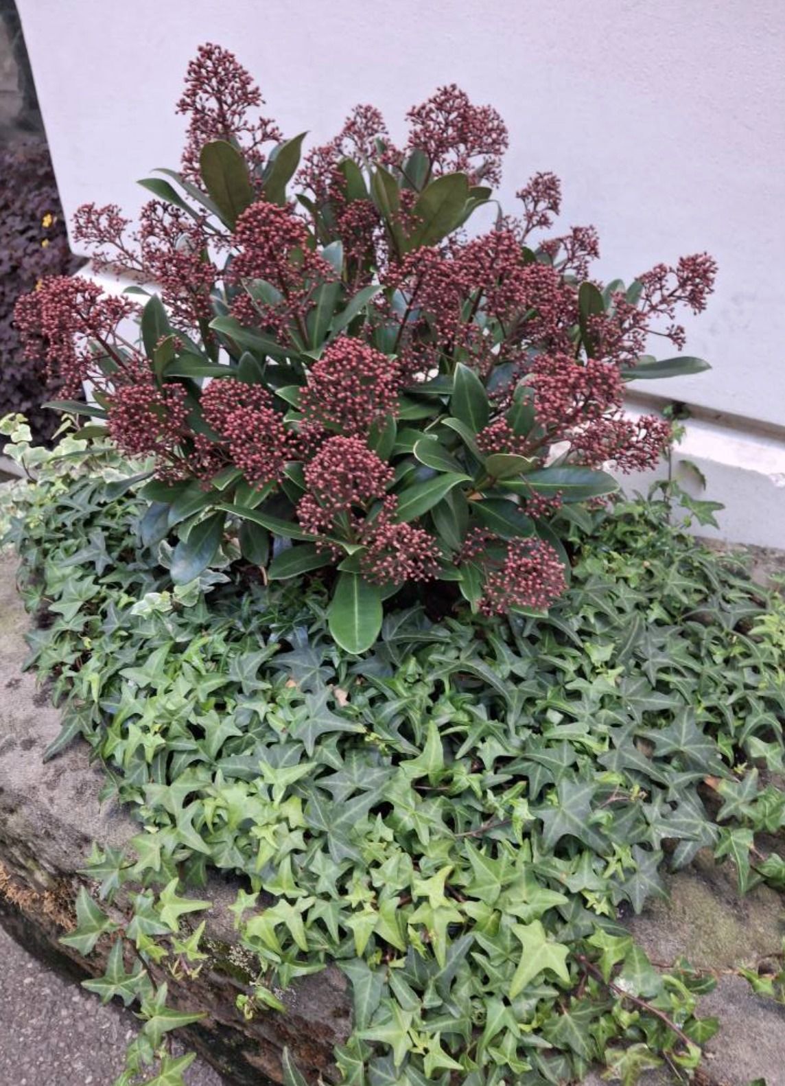 Skimmia japonica 'Rubella' - Skímia japonská 'Rubella' je veľmi pohľadný nízky stálozelený ker. Na vhodnom stanovisku je to veľmi nenáročná rastlinka. Kultivar Rubella je samčí. Je výborným opeľovačom pre samičie druhy. Tento má väčšie listy a kvitne bohatšie. Ker sa prejavý vo svojej kráse na jeseň, kedy sa na rastline tvoria sýto červené púčiky kvetov. Tieto zdobia skímmiu až do jari. Skímmii sa najlepše bude dariť v polotieni až v tieni v dobre priepustnej vlhkej zemi. Pre krásne vyfarbenie listov je potrebné sadiť skímmiu do kyslej pôdy. Vyžaduje si podobné podmienky ako rododendrón, azalaka alebo camélia, preto sa navzájom dobre kombinujú. Nevyžaduje rez. Je plne mrazuvzdorný v našich podmienkach. V zime ju však treba chrániť pred silným slnkom.