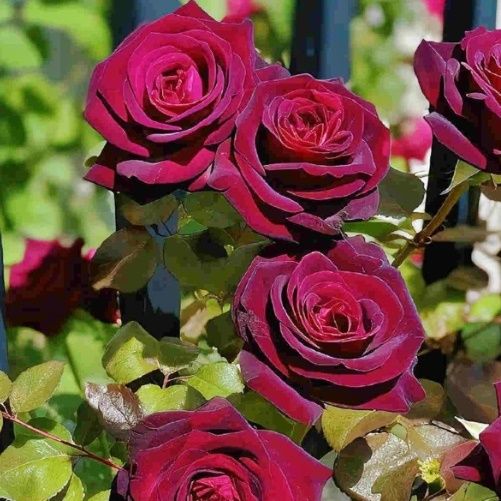 Rosa ´Baccara´ - Ruža ´Baccara´ je jedna z najikonickejších a najuznávanejších odrôd hybridných čajových ruží, preslávená svojou sýtou, zamatovou červenou farbou a výnimočnou trvanlivosťou. Bola vyšľachtená v Holandsku v roku 1996 (predstavená v roku 2000) a rýchlo sa stala favoritom vo floristike po celom svete. Kvety ´Baccary´ sú známe svojou hlbokou, bohatou, tmavou červenou farbou, ktorá má zamatový lesk a je často popisovaná ako "pravá červená" bez oranžových alebo modrých podtónov. Pri plnom rozkvete majú klasický, elegantný, vysoko stredový tvar s približne 30-40 okvetnými lístkami. Priemer kvetov je okolo 8-10 cm. Táto odroda má veľmi jemnú až takmer neznateľnú vôňu, čo je bežné pre mnohé ruže vyšľachtené predovšetkým pre rez a dlhú trvanlivosť. Baccara rastie ako silný, vzpriamený ker s jednou kvetinou na stonke (alebo len málo kvetov), dosahuje výšku približne 80-120 cm. Stonky sú dlhé a rovné, čo je ideálne pre rezané kvety. Taktiež pre vytvarovanie stromčekového tvaru. Má tmavozelené, lesklé, zdravé listy, ktoré pekne kontrastujú s dramatickou farbou kvetov. Jej odolnosť voči chorobám je dobrá, ale ako väčšina hybridných čajových ruží, vyžaduje pravidelnú starostlivosť. Vďaka svojej farbe, tvaru a extrémne dlhej trvanlivosti vo váze (často vydrží 10-14 dní) je obľúbenou voľbou pre luxusné kytice, svadobné aranžmány a špeciálne príležitosti. V záhrade dodá eleganciu a farbu. Baccara je stelesnením klasickej červenej ruže – elegantná, sofistikovaná a mimoriadne trvácna, čím si zabezpečila svoje miesto ako jedna z najžiadanejších ruží na svete.