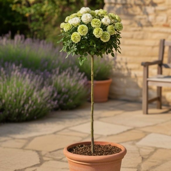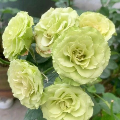 Rosa ´Lovely Green - Ruža ´Lovely Green´ je moderná záhonová ruža (floribunda) z dielne Meilland International (Francúzsko, 2005), ktorá sa preslávila svojou neobvyklou a osviežujúcou zelenkasto-bielou farbou, ktorá je v záhradách a kyticiach skutočným unikátom. Kvety sú hustoplné (41+ okvetných lístkov) a majú krásny guľovitý tvar, pripomínajúci skôr plné ružové púčiky, ktoré sa len zriedka otvoria úplne do širokého kvetu. Farba je biela s výrazným, sviežim zeleným nádychom alebo prelivom (v podstate ide o zelenú ružu s béžovo-bielym stredom). Kvety rastú v bohatých strapcoch a opakovane kvitnú od júna do prvých mrazov. Táto odroda nemá výraznú vôňu, čo ju robí ideálnou pre alergikov a pre tých, ktorí preferujú vizuálny dojem. Ker rastie kompaktne, vzpriamene a má zaoblený habitus, dosahuje výšku približne 60–80 cm a šírku 30–40 cm. Je ideálny aj ako naštepený na kmienok v tvare stromčeka. Listy sú lesklé, tmavozelené a vyznačujú sa vysokou odolnosťou voči bežným chorobám ruží (ako je čierna škvrnitosť a múčnatka), čo z nej robí nenáročnú a zdravú rastlinu. Je výborná ako záhonová ruža alebo aj do kvetinových nádob. Má veľmi dlhú trvanlivosť vo váze a jej netradičná farba dodáva moderným kyticam a aranžmánom sofistikovaný a elegantný vzhľad.