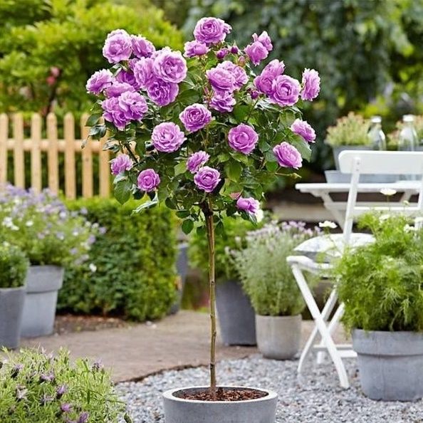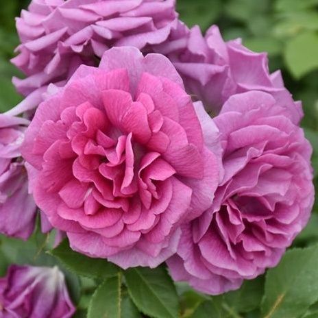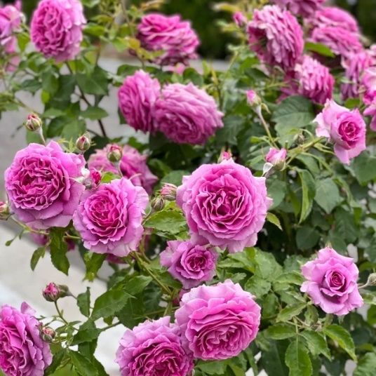 Rosa ´Sweet Madame Blue´ - Ruža ´Sweet Madame Blue´je ohromujúca odroda ruže typu floribunda, známa pre svoju neobvyklú a podmanivú farbu a silnú vôňu. Kvety sú v dymových odtieňoch levanduľovo-fialovej (mauve) s tmavšími, často až purpurovo-fuksiovými tónmi v strede. Kvety sú plné (50-75 okvetných lístkov), majú staromódny, šálkovitý tvar a dorastajú do strednej veľkosti (približne 8–10 cm). Kvitnú opakovane v zhlukoch (klastroch) počas celej sezóny, od jari až do mrazov. Farba je stabilná a dobre drží aj v letnom teple. Má silnú, bohatú a príjemnú arómu, často popisovanú ako zmes citrusových a korenistých tónov s nádychom sladkosti. Ker má kompaktný, plný a zaoblený (guľatý) rast, dosahuje výšku približne 90–120 cm a šírku okolo 90 cm. Pre svoj vzrast ukáže krásne ako naštepená na kmienok do tvaru stromčeka. Má lesklé, tmavozelené listy, ktoré pôsobia ako výborný kontrast k jedinečnej farbe kvetov. Vyznačuje sa veľmi dobrou odolnosťou voči chorobám, najmä hrdzi a múčnatke. Hodí sa aj ako rezaná kvetina do vázy vďaka dlhej životnosti kvetov a silnej vôni. Ide o relatívne novú odrodu (vyšľachtená Christianom Bédardom v USA v roku 2008, predstavená okolo roku 2021), ktorá si rýchlo získala obľubu pre svoju krásu a spoľahlivosť.